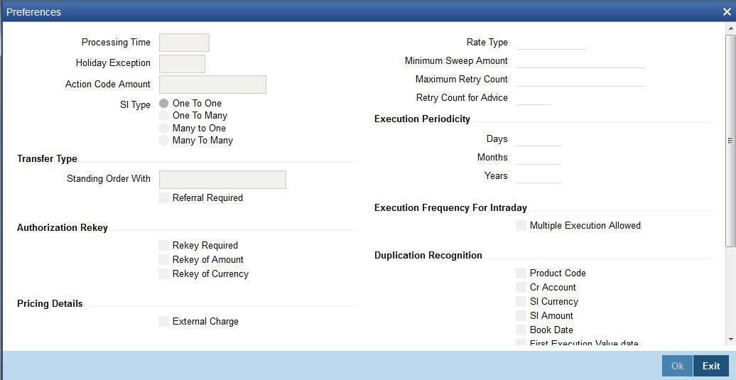 If the processing type is Intraday, then you need to manually sweep-in, sweep-out or range-balance the instructions created under this product. Use ‘Standing Instruction Intraday Processing/Reversal’ (SIDINDPR) screen to process manual intraday sweep.