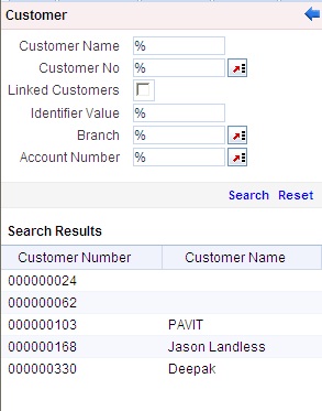 In this screen, you have to enter any search criteria for whom multiple transactions have to be processed and then click on the ‘Search’ button. The system will display the details of the selected customer in a format as shown above.
