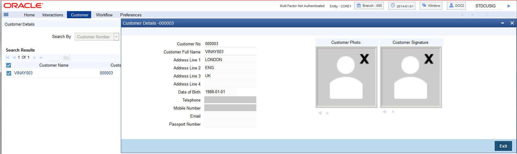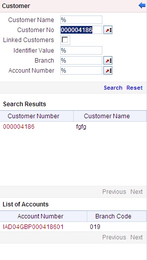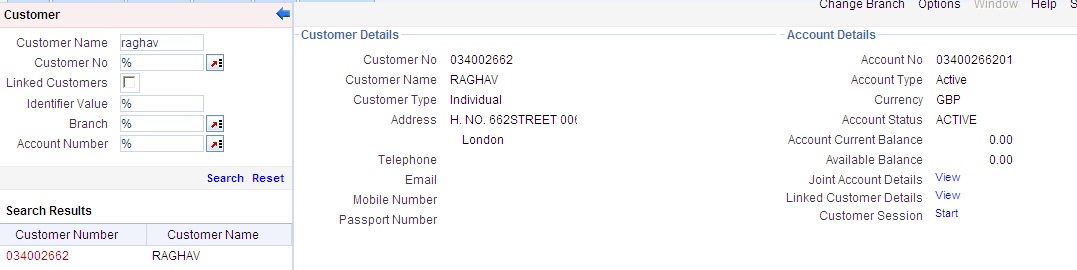 When you click on the hyperlink provided for ‘Customer Name’ in the screen above, the account details of the customer will be displayed in a separate screen, as shown below also the following customer details are displayed: