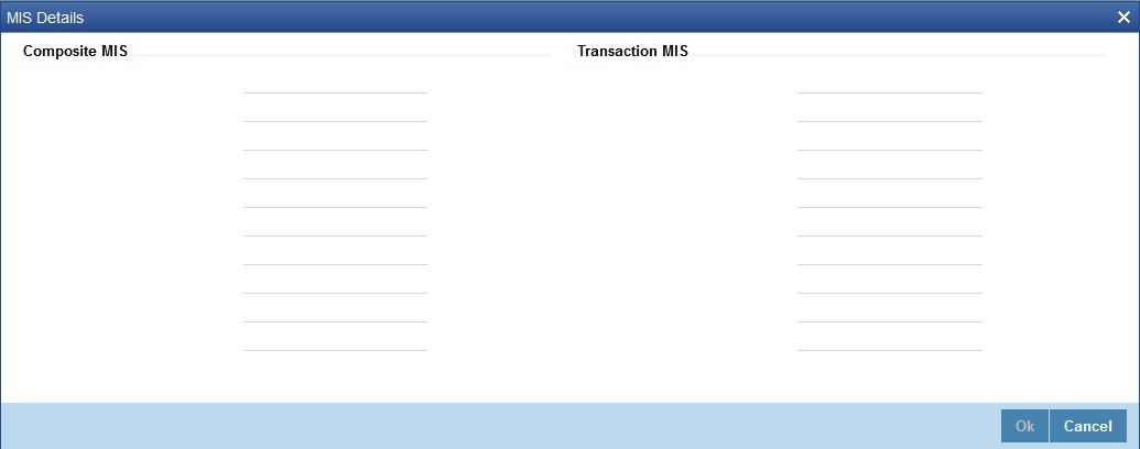 MIS is user definable and is configured at the host. Refer to the Oracle FLEXCUBE host user manual for details.