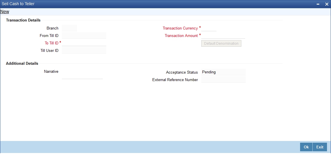 You can perform cash transfer between Tellers within a branch in the ‘Sell Cash to Teller’ screen.