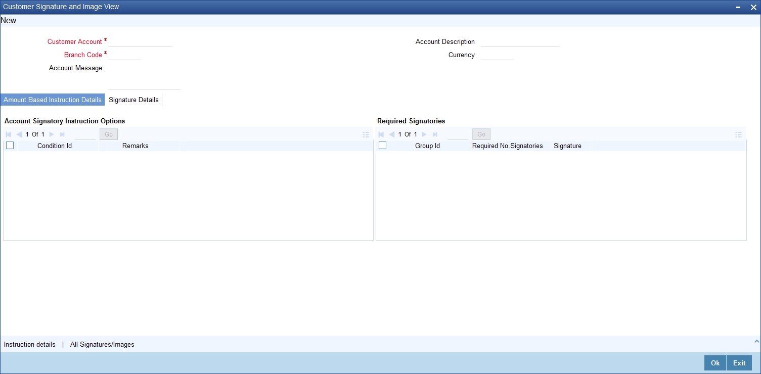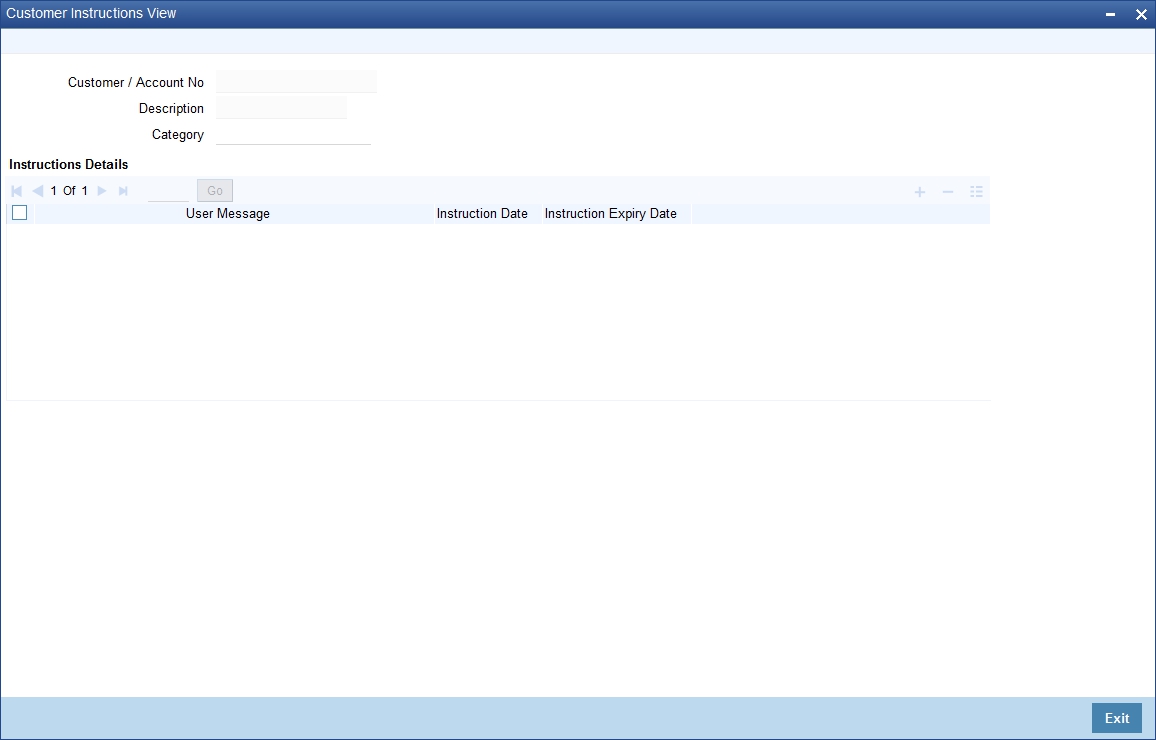 You can invoke the ‘Customer Instructions View’ screen by clicking the ‘Instruction Details’ button in the Customer Sign View screen.