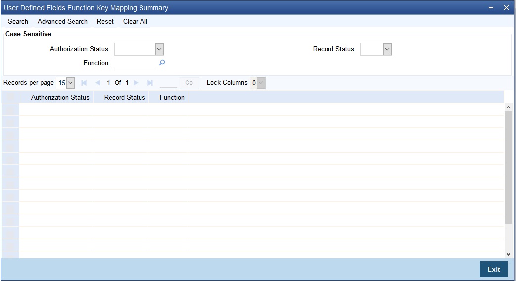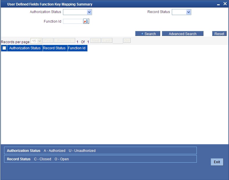 Through the Function Key Mapping screen you can define the Record Key items that are used for the Function ID. This maintenance becomes mandatory if you have to use an UDF in all or any of the Functions.