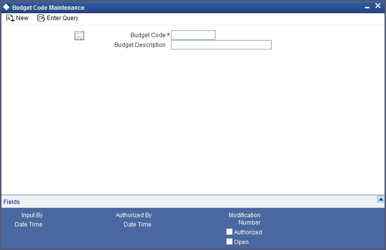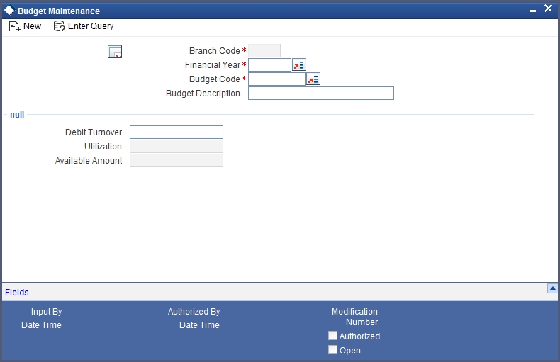 For each budget code defined through the ‘Budget Code Maintenance’ screen, you have to maintain budget details such as the budget limit, the fiscal year for which the budget tracking would be done, the name of the branch etc.