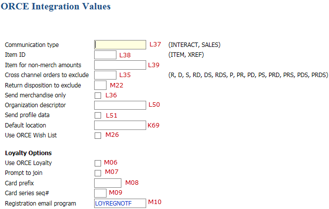 • The ORCE Customer Integration (L37) system control value must be set to INTERACT, indicating you communicate with Oracle Retail Customer Engagement interactively.