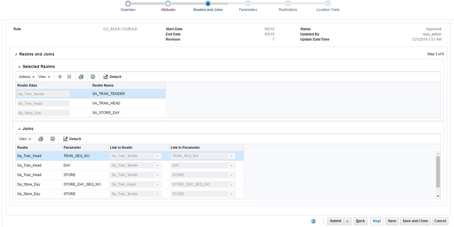 The Joins section displays how the realms are joined together. These joins are based on metadata defined in the system.