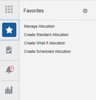 You can click the Favorites icon in the Tasks menu to access tasks designated as favorites. You can also select the cog icon from the Favorites menu to edit the favorite list. Tasks can be selected or deselected as favorites in the Tasks menu.