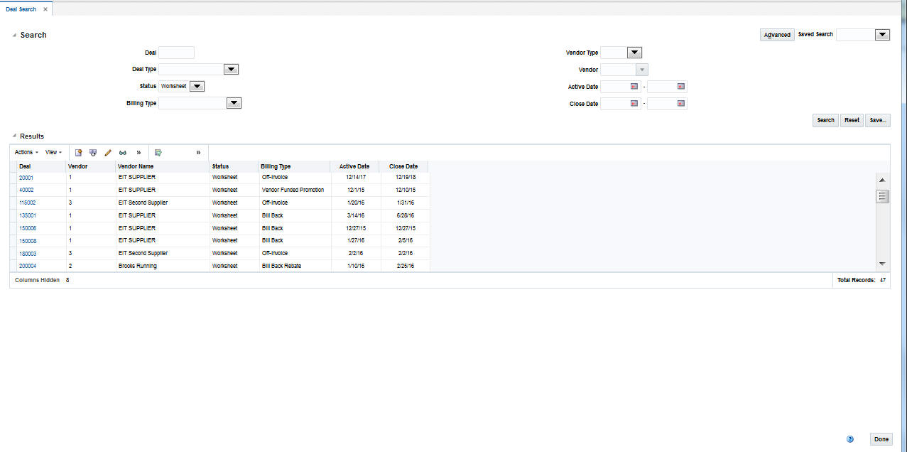 Click Search. The deals that match the search criteria are displayed in the Results section.