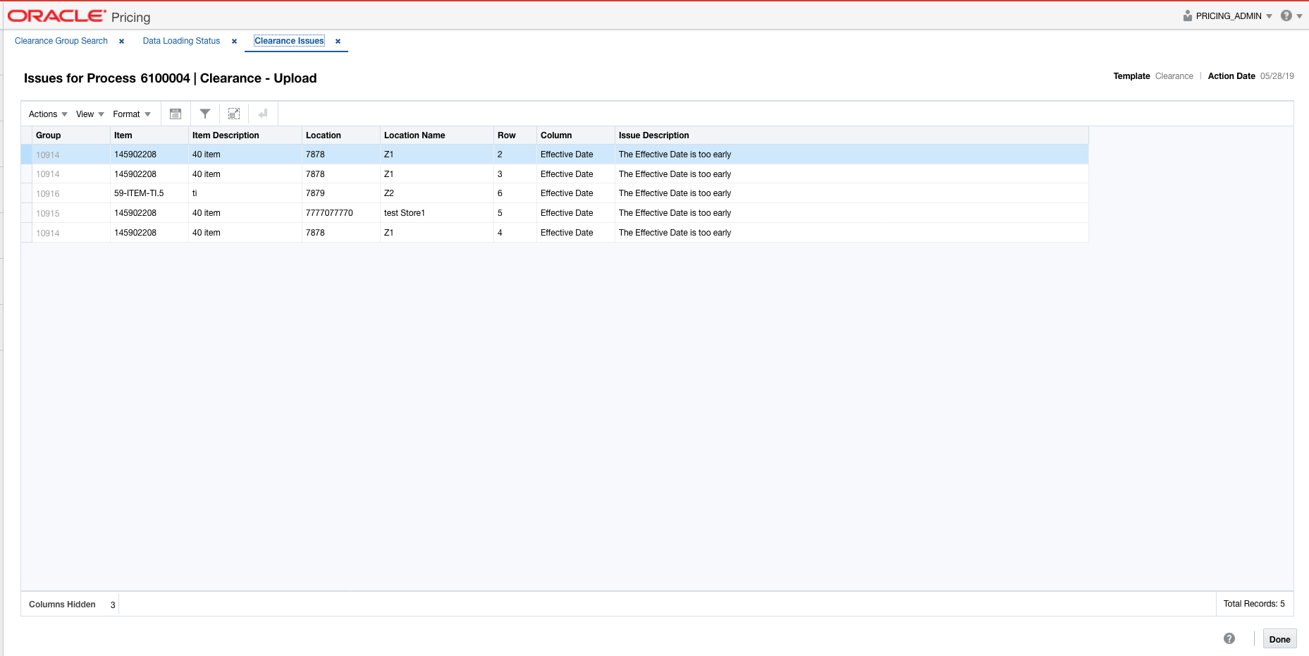 Pricing supports downloading of clearance groups into a spreadsheet to allow you to perform mass maintenance on the data. This data can then be re-uploaded into Pricing to update the events. Additionally, the upload function provides the ability to create new events from a spreadsheet and have them added to an existing group or create a new group. This chapter summarizes the workflow for both download and upload of clearance groups.