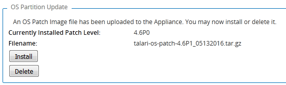 This chapter illustrates the process of installing an Oracle SD-WAN Edge OS Patch on an Oracle SD-WAN Appliance with OS 4.6 on its active OS partition, but the steps described apply to all patch installations, regardless of OS version.