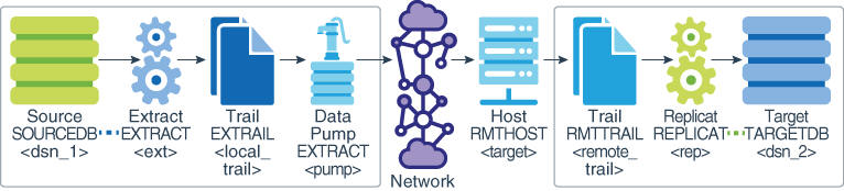 ソース・システムにデータ・ポンプを追加して、プライマリExtractをTCP/IP機能から分離することで、記憶域の柔軟性を向上し、プライマリExtractからフィルタリングおよび変換処理のオーバーヘッドを削減できます。