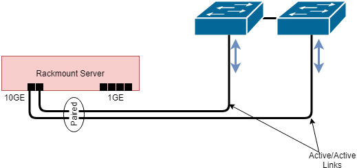Some lab infrastructure will be able to support the production use-case. However, due to its dependence on switching technology, and the possibility that much of the lab will not have the dependent switch capabilities, the NIC pairing strategy will need to support an active/active mode that does not have dependence on switch clustering technologies (adaptive load balancing, round-robin), active/standby that does not have dependence on switch clustering technologies, or a simplex NIC configuration for non-redundant topologies.