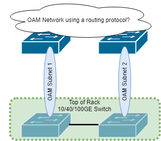 The OAM network uplinks are expected to use static routing in the first deployment of CNE for a targeted customer. This means that the first ToR switch will have a default route to a specific customer OAM router interface, while the other ToR switch has a default route to a different customer OAM router interface. If the ToR switches are clustered together as one logical switch, then this behavior should still work in certain failure scenarios, but more testing would be needed. For example, if the link to OAM subnet 1 were to go down, then the switch physical or virtual interface to OAM subnet 1 should go down, and thus be removed from the route table. If, however, the switch link doesn't go down, but the customer OAM router interface were to become unreachable, the static default route to OAM subnet 1 would still be active, as there is no intelligence at play to converge to a different default route. This is an area in need of further exploration and development.