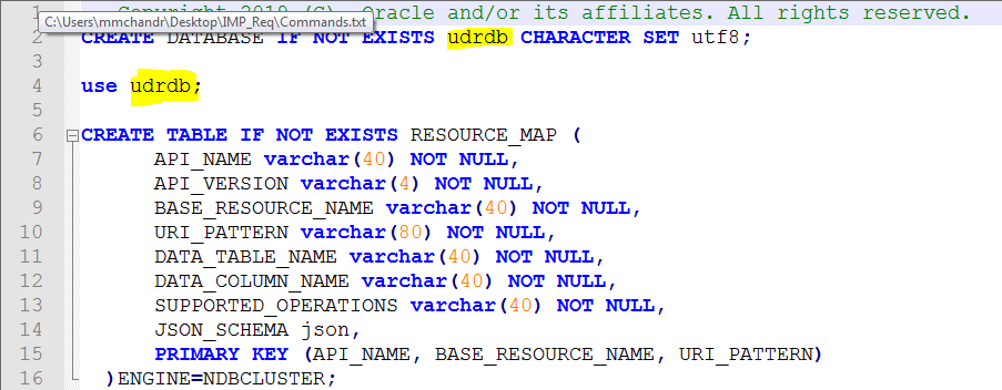 The udrSchema.sql is available in the UDR Customer Documentation.Change the DB name to desired value in udrSchema.sql file in the below highlighted places.