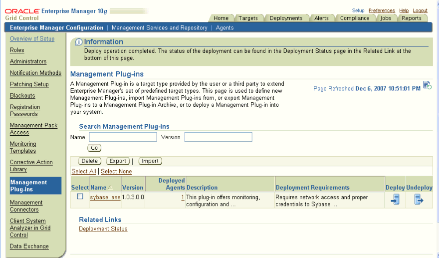 プラグインが正常にデプロイできたら、次の手順に従って、プラグイン・ターゲットをGrid Controlに追加します。これにより、ターゲットが集中的な監視および管理の対象になります。