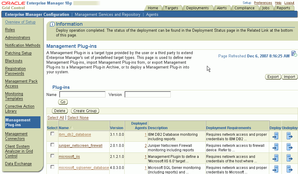 プラグインが正常にデプロイできたら、次の手順に従って、プラグイン・ターゲットをGrid Controlに追加します。これにより、ターゲットが集中的な監視および管理の対象になります。