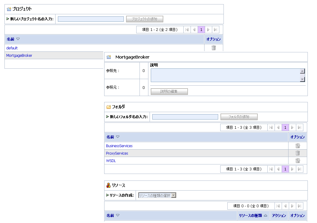 詳細については、『AquaLogic Service Bus Console の使い方』の「プロジェクト エクスプローラ」を参照してください。