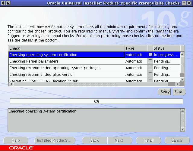Linuxシステムの場合は、「製品固有の前提条件のチェック」画面が表示されます。