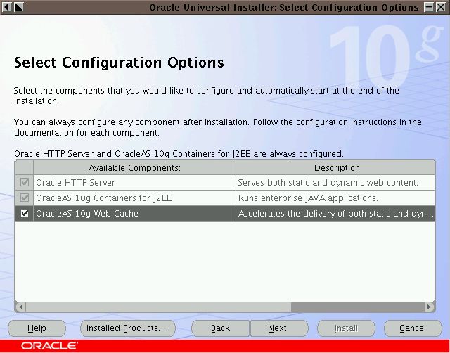 Oracle Application Server中間層のJ2EE and Web Cacheインスタンスをインストールするには、次の手順を実行します。