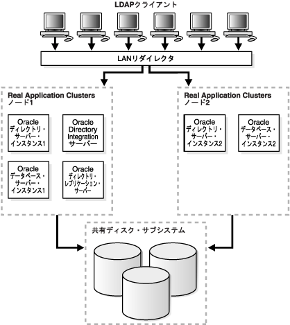 ディレクトリ・レプリケーションは、Oracle Internet Directoryの2つ以上のReal Application Clustersノード間で構成できます。