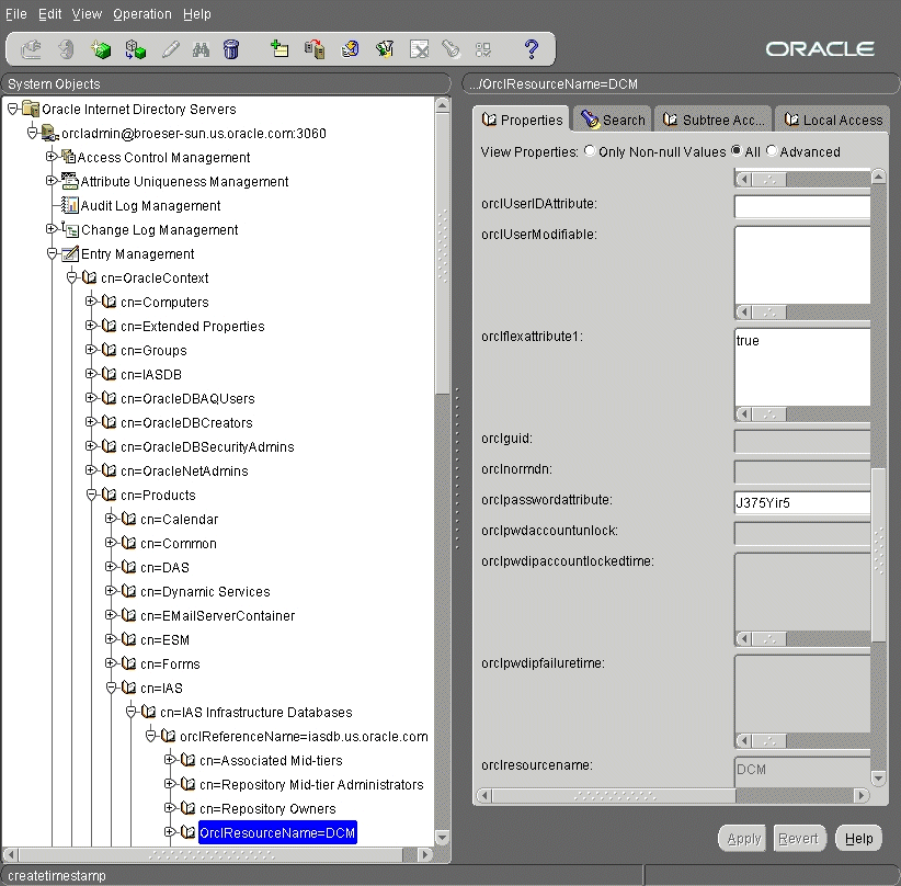 DCMスキーマのパスワードが、右側のorclpasswordattributeフィールドに表示されます。