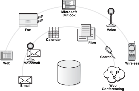 Oracle Collaboration Suiteは、通信およびコラボレーション・サービスを提供する一連の統合ソフトウェア・コンポーネントです。 これらのコンポーネントは、Oracle9i Application ServerおよびOracle9i Databaseに基づいています。 Oracle Collaboration Suiteを使用すると、ユーザーは電子メール、ボイスメールおよびFaxを交換できます。 また、予定の編成、ドキュメントの共有、オンライン会議の調整、追跡および実行を行うこともできます。 ユーザーは、Webまたはワイヤレス・ネットワークを介して、電話やFaxによって、またはMicrosoft Outlookなどのクライアント・アプリケーションを使用して、これらのサービスにアクセスします。