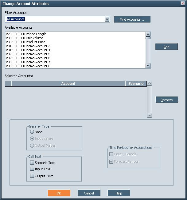 The Change Account Attributes dialog box enables copying Cell Text notes between entities.