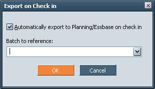 For implementations exporting fromStrategic Finance to Oracle Essbase or Oracle Hyperion Planning, Fusion Edition, there is an option for triggering the export whenever an exported entity is checked in to the Strategic Finance server. To use automatic export, batches and maps must be set up for export.