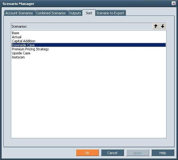 The Scenario Manager—Sort tab enables you to reorder the scenarios listed in the Scenarios list of the Accounts tab.