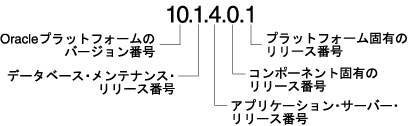 Oracleで使用されるリリース・レベルの命名体系を理解するには、図I-1に示したOracleのリリース番号の例を確認してください。