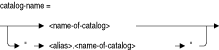 構文図では、column-nameの構文要素は、CREATE文でカタログに付けた名前の修飾済または未修飾のいずれかの形式を参照します。つまり、構文図ではcatalog-nameは常に次のように定義されます。 ![]() |