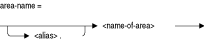 構文図では、area-nameの構文要素は、CREATE STORAGE AREA句で記憶域に付けた名前の修飾済または未修飾のいずれかの形式を参照します。 ![]() |