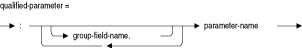 パラメータは、あらゆる階層のグループ・フィールドで修飾できます。グループ構成メンバーのパラメータを参照する修飾形式は、次のとおりです。