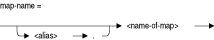 構文図では、map-nameの構文要素は、CREATE STORAGE MAP文で記憶域マップに付けた名前の修飾済または未修飾のいずれかの形式を参照します。 ![]() |
