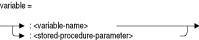 SQL文の構文図では、パラメータ構文要素は、データ・パラメータおよびインジケータ・パラメータのすべての表記法を参照します。 |