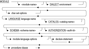 SQLモジュール言語では、SQLプリコンパイラによってサポートされていないホスト言語からSQL文を含むプロシージャをコールできるようにする、特別なキーワードおよび構文が提供されています。