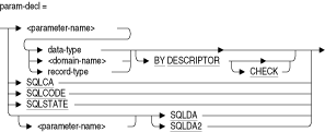 - パラメータ宣言にCHECKオプションを利用する場合。このオプションは、BY DESCRIPTOR句で宣言されたパラメータに対してのみ使用できます。