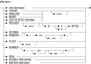 INTEGERデータ型を除き、データ型およびキャラクタ・セットでのデータ型の修飾の詳細は、第2.3節および第3.5節を参照してください。次の引数では、SQLモジュール言語に関するINTEGERデータ型について記述します。
