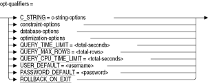 SQLプリコンパイラのコマンドラインで許可されるオプションの修飾子を示します。SQLOPTIONS= (QUERY_CPU_TIME_LIMIT=total-seconds)