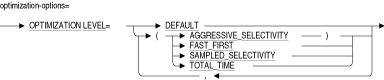 TOTAL_TIMEオプションまたはFAST_FIRSTオプションは、AGGRESSIVE_SELECTIVITYオプションまたはSAMPLED_SELECTIVITYオプションとともに選択できます。キーワードを区切るにはカンマを使用し、リストは丸カッコで囲みます。