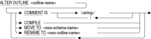 SQL> alter outline show_tables cont> rename to show_the_tables; SQL> show outline show_the_tables SHOW_THE_TABLES Comment: show the tables query derived from the stored procedure testing new COMMENT ON OUTLINE Source: -- Rdb Generated Outline : 8-FEB-2002 16:17 create outline SHOW_THE_TABLES id '4D5B5CC5B46C6DD21B0E1999C0EB8BF3' mode 0 as ( query ( -- For loop subquery ( RDB$RELATIONS 0 access path index RDB$REL_REL_NAME_NDX ) ) ) compliance optional ;