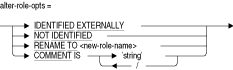SQLがオペレーティング・システムからロールを継承するかどうかを指定します。これらの句のいずれかを指定する場合、ロール作成時に指定した句を指定する必要があります。IDENTIFIED EXTERNALLYからNOT IDENTIFIEDにまたはNOT IDENTIFIEDからIDENTIFIED EXTERNALLYにロールを変更する場合、ALTER ROLE文は使用できません。IDENTIFIED EXERNALLY句は、SQLがOpenVMS権利識別子など、オペレーティング・システムのファシリティで定義されたロールを継承することを示します。