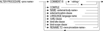 - COMPILE句、COMMENT句およびRENAME TO句を除き、ALTER PROCEDURE文の属性はすべて、外部プロシージャにのみ適用されます。