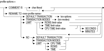 変更中のプロファイル名を変更します。詳細は、「RENAME文」を参照してください。ALTER PROFILEでサポートされている他のすべての属性の説明は、「CREATE PROFILE文」を参照してください。