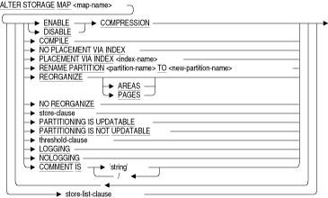 store-clauseの構文の詳細は、「CREATE STORAGE MAP文」を参照してください。ただし、ALTER STORAGE MAP文におけるこの句の影響は、既存の記憶域マップの変更方法によって異なります。