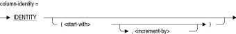 列が特殊な読取り専用識別列であることを指定します。INSERTによってこの列が評価され、挿入された各行の一意の値が格納されます。表の1列のみがIDENTITY属性を保持できます。Oracle Rdbにより、現在の表と同じ名前を持つ順序が作成されます。詳細は、「ALTER SEQUENCE文」および「CREATE SEQUENCE文」を参照してください。