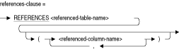 列制約では、被参照表の一意キーまたは主キーの列名です。表制約では、被参照列名が被参照表の一意キーまたは主キーである列の名前です。referenced-column-name句を省略すると、デフォルトで主キーが選択されます。references-clause