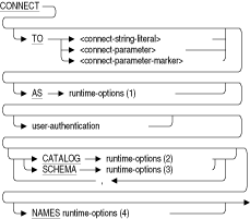 現在の接続のセッションのデフォルト・キャラクタ・セット、識別子・キャラクタ・セットおよびリテラル・キャラクタ・セットとして使用されるキャラクタ・セット名を指定します。runtime-optionsの値は、第2.1節にリストされたキャラクタ・セットのいずれかである必要があります。動的SQLのパラメータ・マーカー、プリコンパイルされたSQLプログラムのホスト言語変数、SQLモジュールの言語モジュールのパラメータ、または文字列リテラルを指定できます。指定する引数は、実行時に解釈される接続式を含む文字列である必要があります。