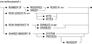 スイープ操作中に、行キャッシュ・サーバー(RCS)・プロセスにより行キャッシュから再度データベースに書き戻される変更済の行の数を指定します。RCSは、変更済データでキャッシュが満杯であると通知を受けると、後続のトランザクションで行をキャッシュに挿入できるようにスイープを開始し、キャッシュ内に使用可能なスペースを作成します。スイープ行の数を、最初にキャッシュ内の合計行数の約5%に指定することをお薦めします。その後パフォーマンスを監視して、スイープ行の数を必要に応じて調整します。使用可能な値の範囲は、2〜524288である必要があります。指定しない場合、デフォルトは3000行です。ROW LENGTH IS n BYTES