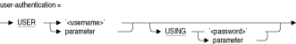 USER句で指定されているユーザー名に対するユーザーのパスワードを指定する文字列リテラルです。user-authentication